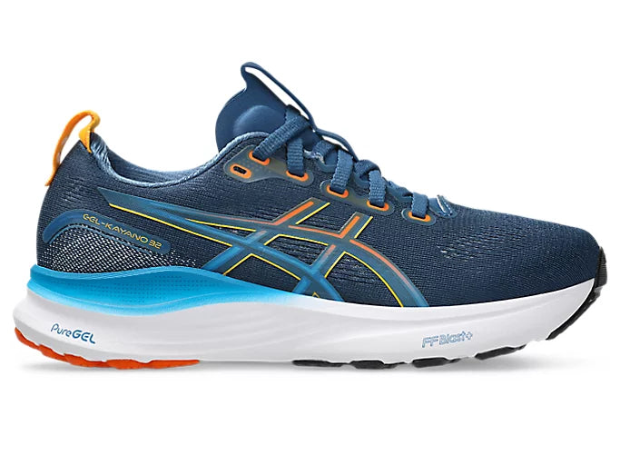The GEL-KAYANO™ 32 GS (Grade School) shoe helps create a stable and comfortable underfoot experience for young feet. Its midsole features FF BLAST™ PLUS cushioning. This material is lighter than the FF BLAST™ foam and provides a blend of cloud like cushioning and a responsive ride.